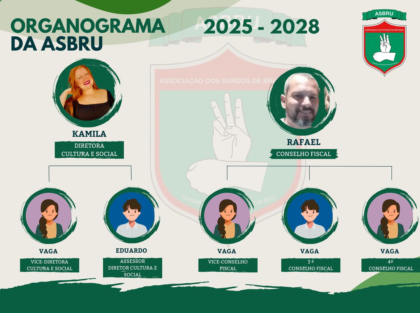 Eleita em assembleia no dia 22 de fevereiro de 2025, a equipe já está em atividade, promovendo eventos, esportes, cultura, cursos e palestras. Seu objetivo é fortalecer o contato entre associados e não associados, surdos e ouvintes, além de familiares da comunidade surda, criando um ambiente mais inclusivo e acessível para todos.